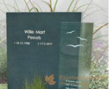 Eigentijdse grafsteen van groen natuursteen Glas, natuursteen
