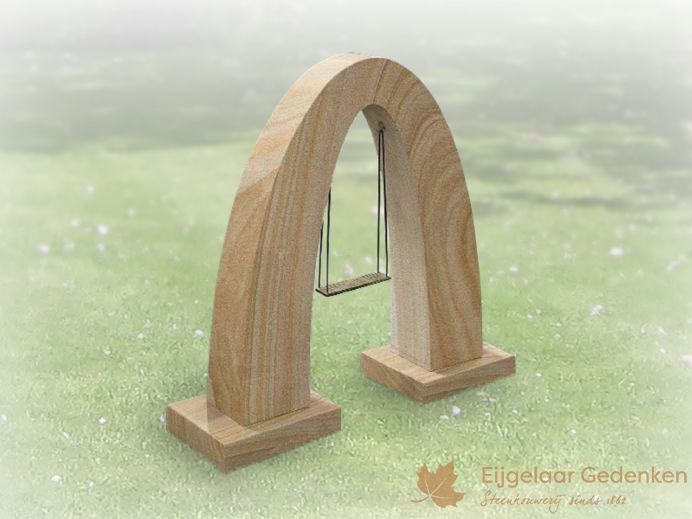 Kindermonument schommel 026  Hout, houtimitatie, natuursteen