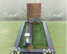 Teakhouten grafmonument met RVS-tractor Hout, rvs