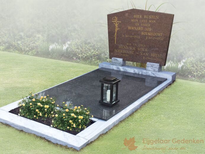 Enkele grafsteen - met vloerEnkele grafmonumenten of grafstenen zoals deze zijn ontworpen voor een enkel breed graf. Hoewel deze grafmonumenten enkel breed zijn, kan het graf wel 2 of 3 diep zijn en dus plaats bieden aan meerdere personen. Afhankelijk van de ruimte voor de belettering kan een enkel grafmonument dus prima plaats bieden aan meerdere namen en opschriften.